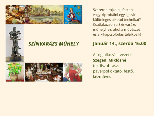 A rajzolni, festeni vágyókat várja a Színvarázs műhely. Az első foglalkozásra január 14-én szerdán, délután 4 órától kerül sor a József Attila Könyvtárban (3526 Miskolc, Szentpéteri kapu 95.). A részletekről a képre kattintva olvashat.