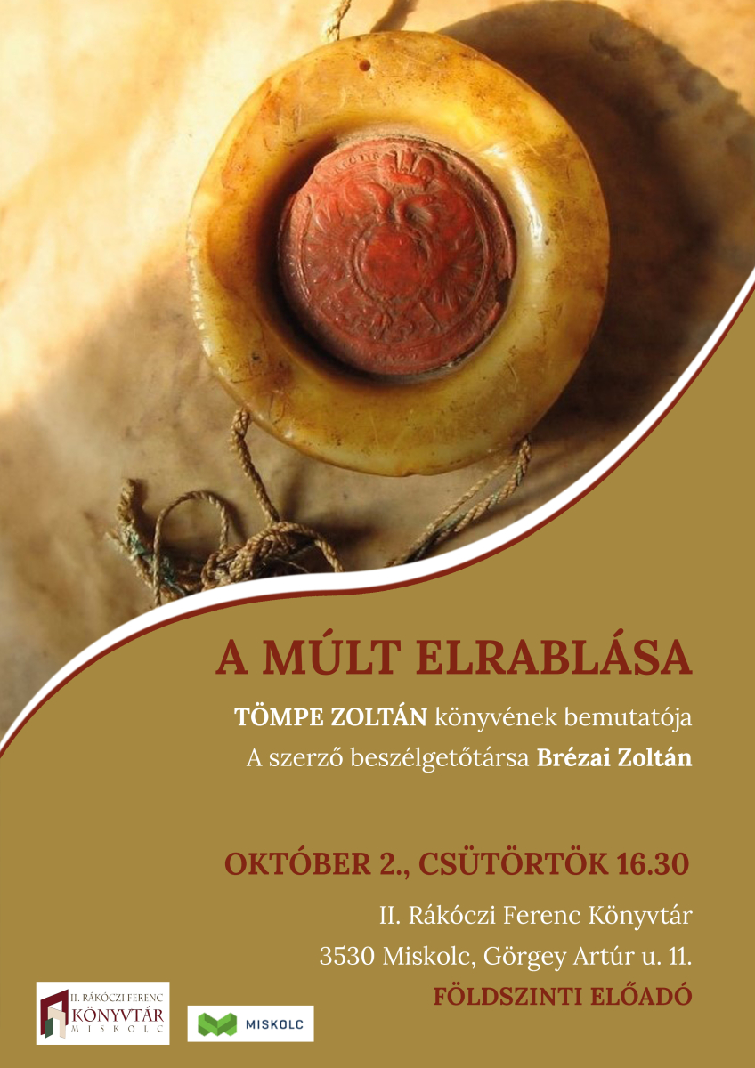 A múlt elrablása címmel jelent meg Tömpe Zoltán kötete, mely családjáról, egy 600 éves múltra visszatekintő nagykárolyi nemesi famíliáról szól. Az idén megjelent könyv bemutatóját 2025. október 2-án, csütörtökön 16.30-tól tartják a II. Rákóczi Ferenc Könyvtárban (Miskolc, Görgey A. u. 11.).